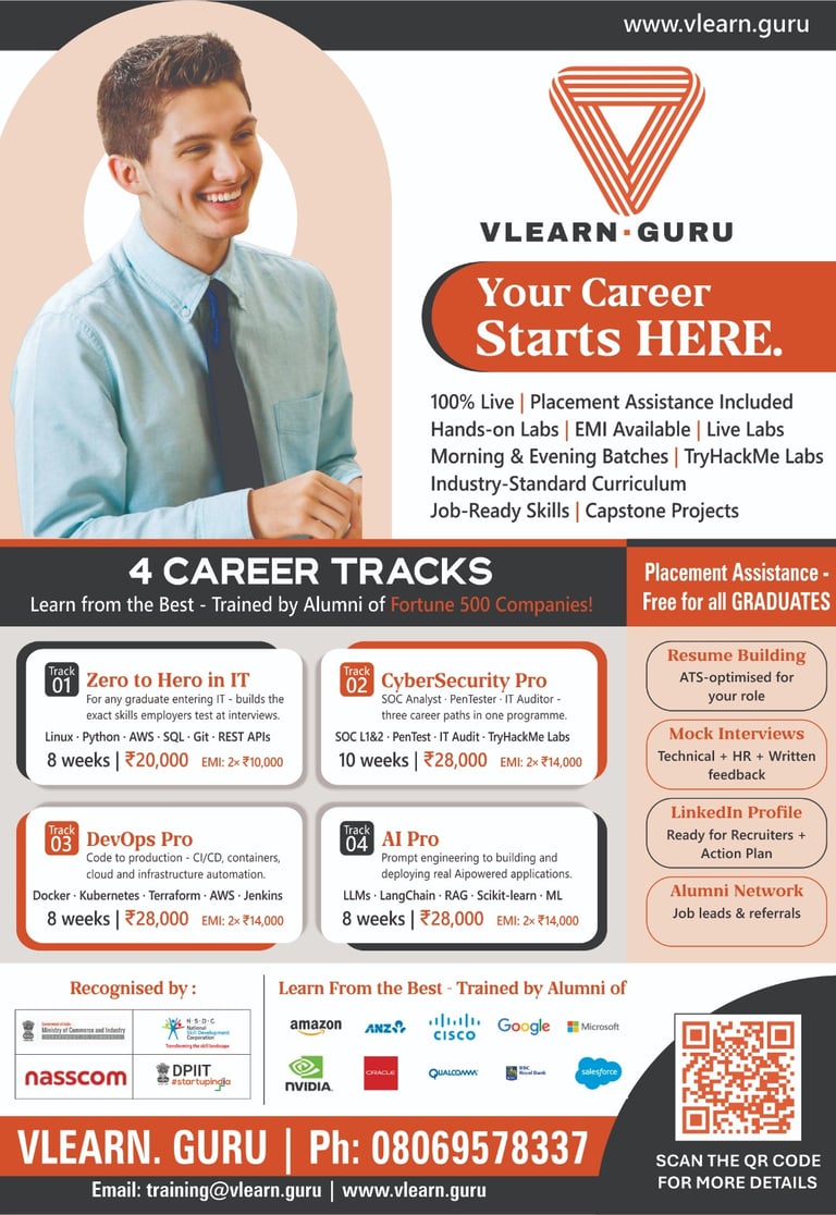 Deliver structured, outcome-driven programs in Cloud, DevOps, and Cybersecurity.